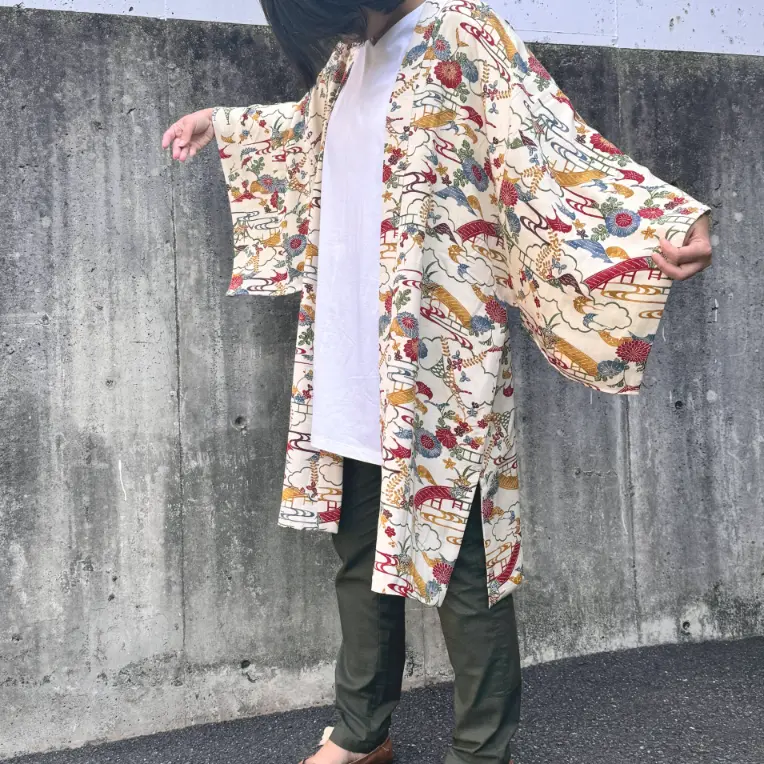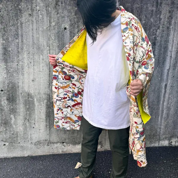 Each Haolly piece is upcycled from a vintage kimono and redesigned for modern life — there is no right or wrong way to wear it. Because the outer fabric is pure silk, we recommend dry cleaning only.