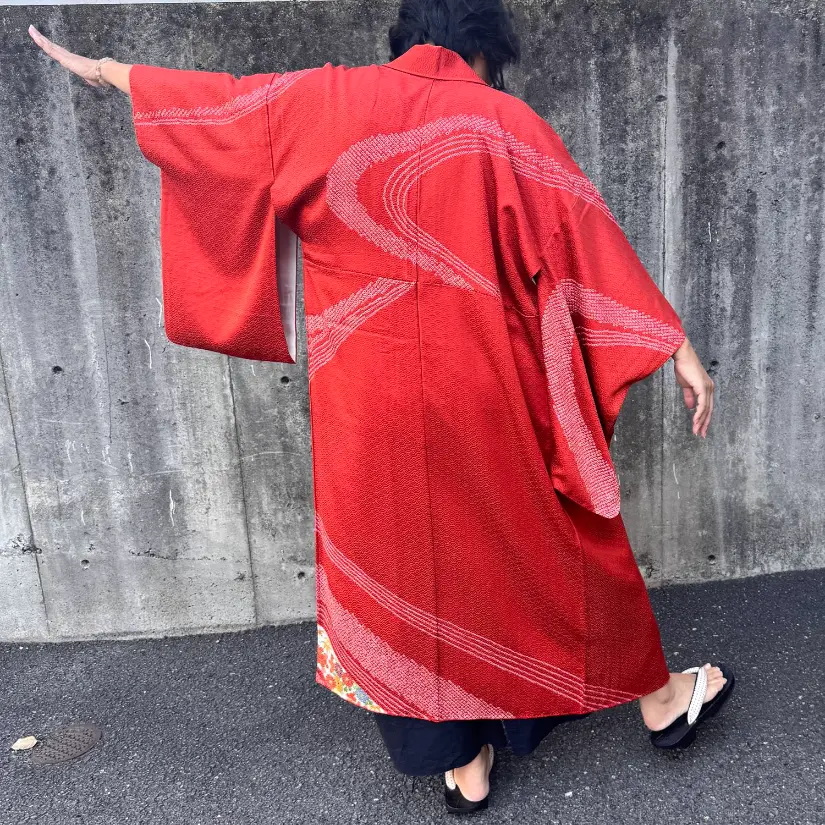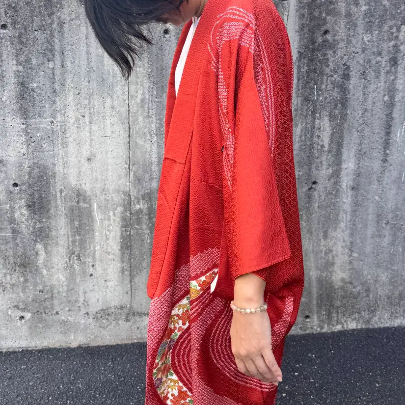 Each piece is upcycled from a vintage kimono and reimagined with a modern twist — how you wear it is entirely up to you. Because the outer fabric is pure silk, we recommend dry cleaning only.